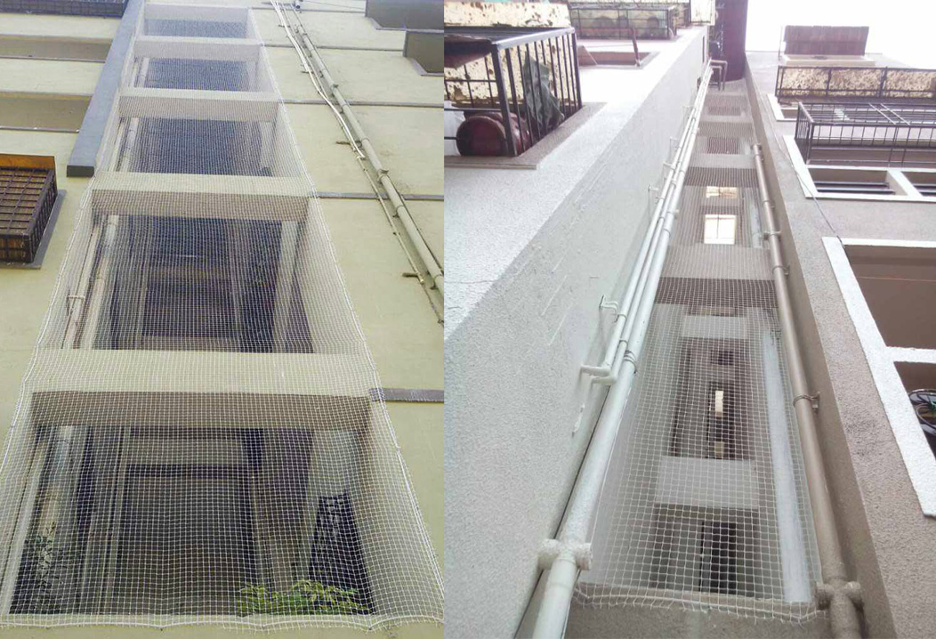Duct area safety nets are designed to secure the empty gap between two blocks of buildings in the apartments. Mainly duct areas filled with birds, which dirtying premises of buildings. Nikhil Sai safety nets are duct area safety nets in Visakhapatnam & Vijayawada, which has highly acknowledged experts to cover in your duct area.